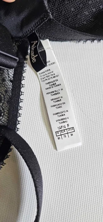 French Leavers Lace Underwire Bra Gold Plated Jewel Between Cups And Adjustable Straps Colour: Black Composition: 100% Polyamide Care: Warm Gentle Machine Wash In Laundry Bag With Similar Colours. Do Not Bleach. Do Not Iron, Do Not Tumble Dry. Do Not Dry Clean Any Underwear Or Swimwear Which Have Been Opened Or Their Protective Seals Removed, Cannot Be Returned Due To Hygiene Reasons Unless Faulty