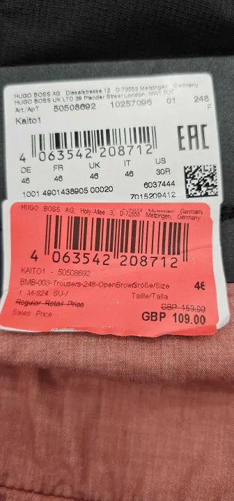 Boss - Brown Tailored Slim Fit Trousers - Brown Size: 30R