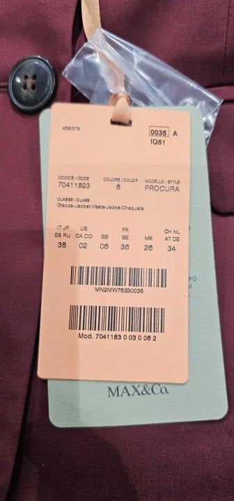 Burgundy Procura Cotton Blazer , Size Uk 6.