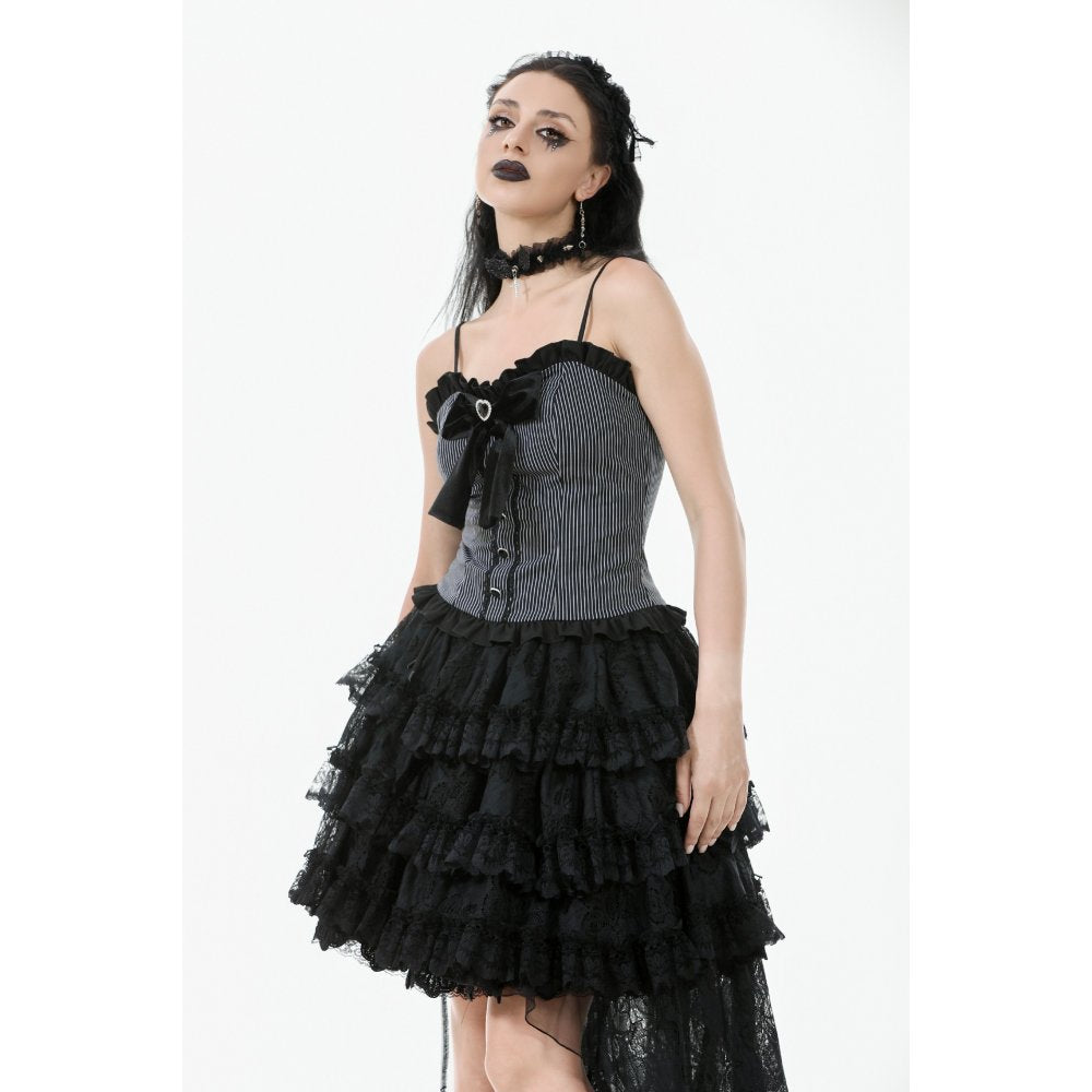 Dark in Love Belladonna Tiered Lace High-Low Goth Skirt in Black