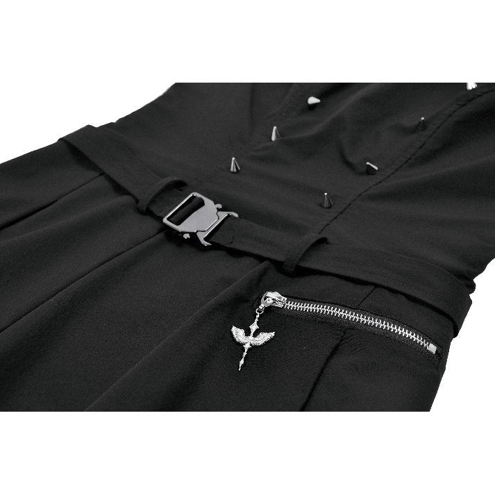Command attention in the Cassia Buckled Pleated Dress by Dark in Love — a fierce fusion of military structure and rebellious goth fashion. This sleeveless mini dress features a fitted bodice adorned with decorative studs and front seams that accentuate your silhouette. The pleated skirt creates a flattering A-line shape with an edgy asymmetric hemline for movement and shape.