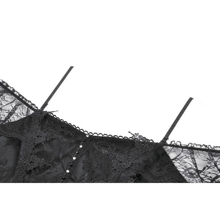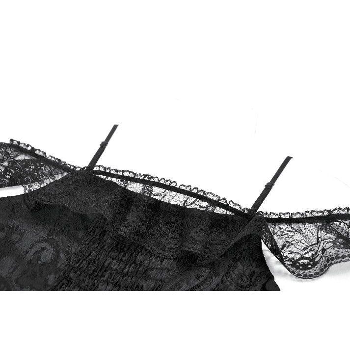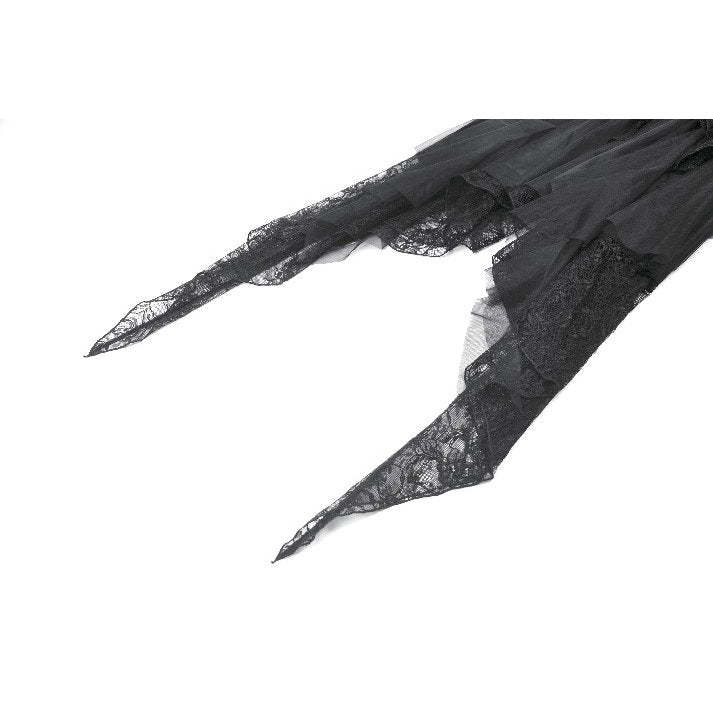 Let the night bloom around you in the Morgana Dress by Dark in Love – a mesmerising fusion of lace, velvet-textured brocade, and sheer tulle. This off-shoulder masterpiece features delicate lace-trimmed straps, fitted corset-style bodice, and a high-low layered skirt adorned with trailing black lace. Whether you're stepping into a moonlit ball or leading a midnight ritual, this dress casts a silhouette of haunting beauty and regal allure.