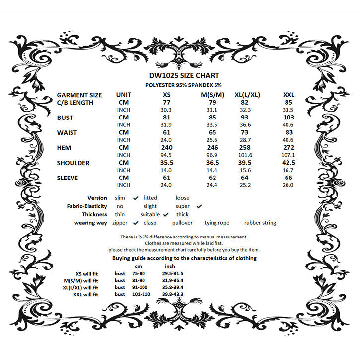 Check the Dark in Love size guide in the images for the perfect fit.