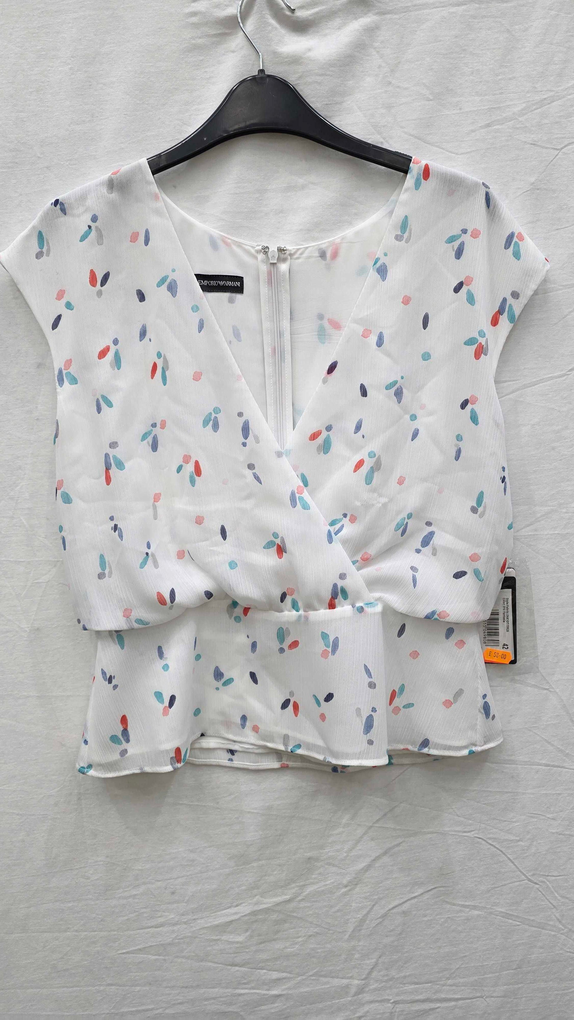 Emporio Armani - Black Contrast Print Wrap Blouse Size: Uk 10