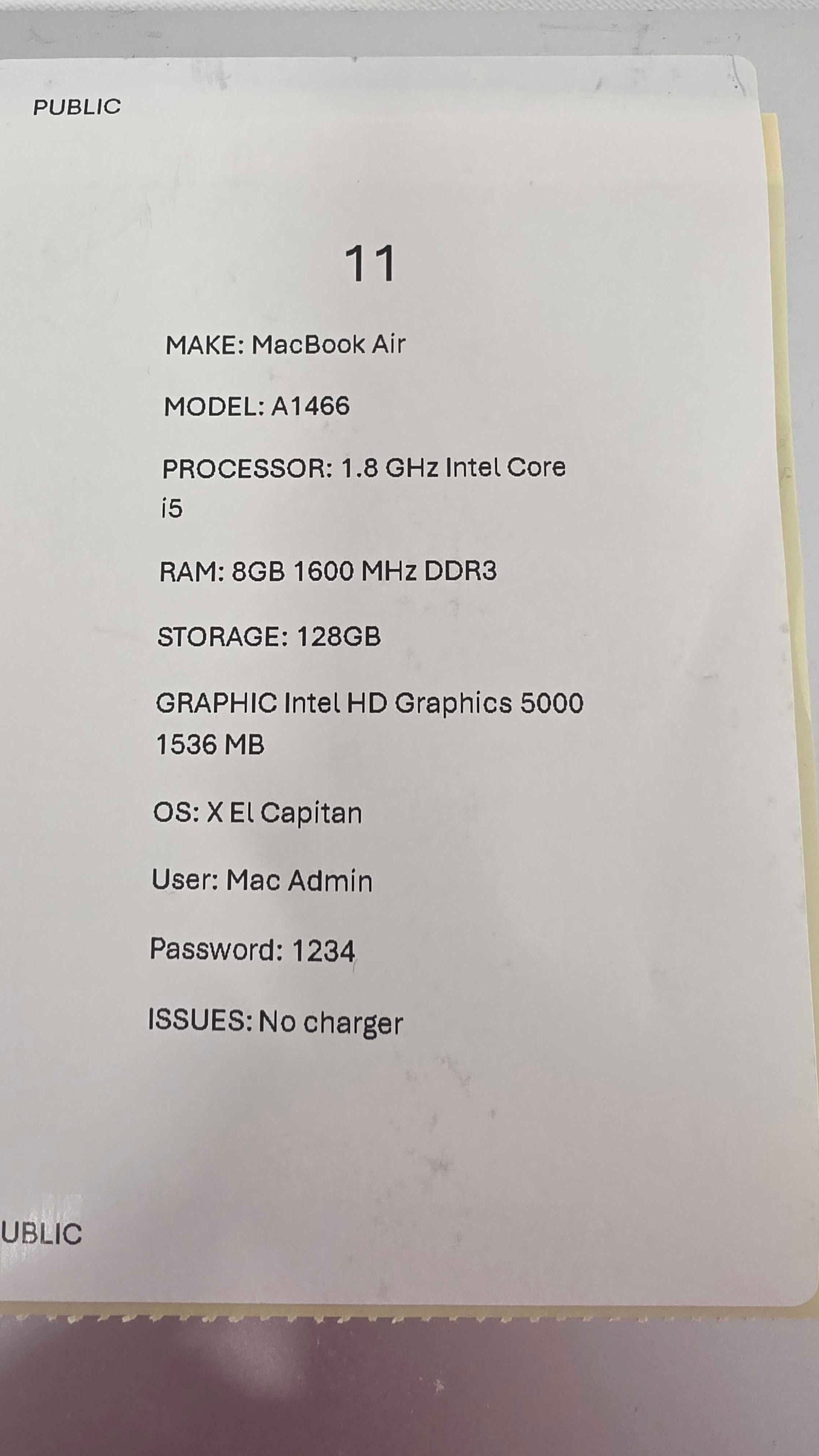 Macbook Air A1466 Size: 128Gb