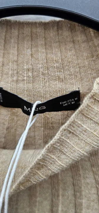 Mango-57065793-09-21-Brown-Brown High Collar Ribbed Knit Jumper-Brown Size: M