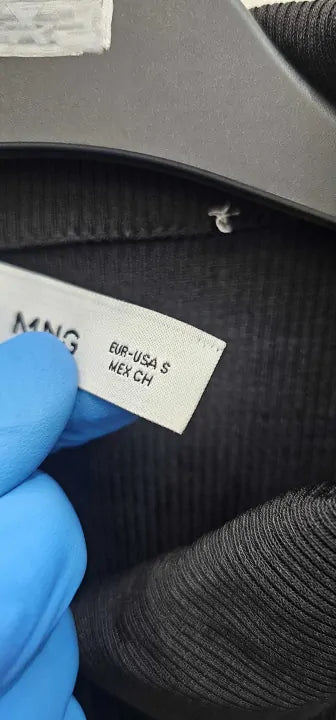 Mango-57074029-99-S-Black-Black Ribbed Polo Shirt-Black Size: S