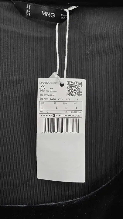 | Mango - Black Low Cut Velvet T Shirt - Black Size: Large | ||||