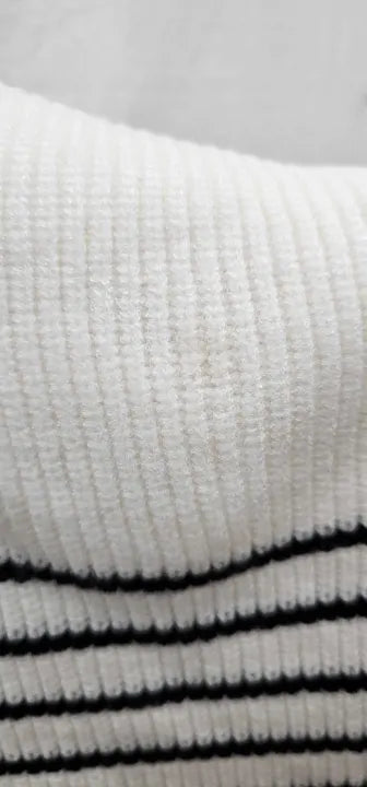 Striped Print Long Sleeve Oversize Design Composition: 50% Viscose, 28% Polyester, 22% Polyamide Colour: Dark Navy Care: Do Not Bleach, Ironing Max 110
