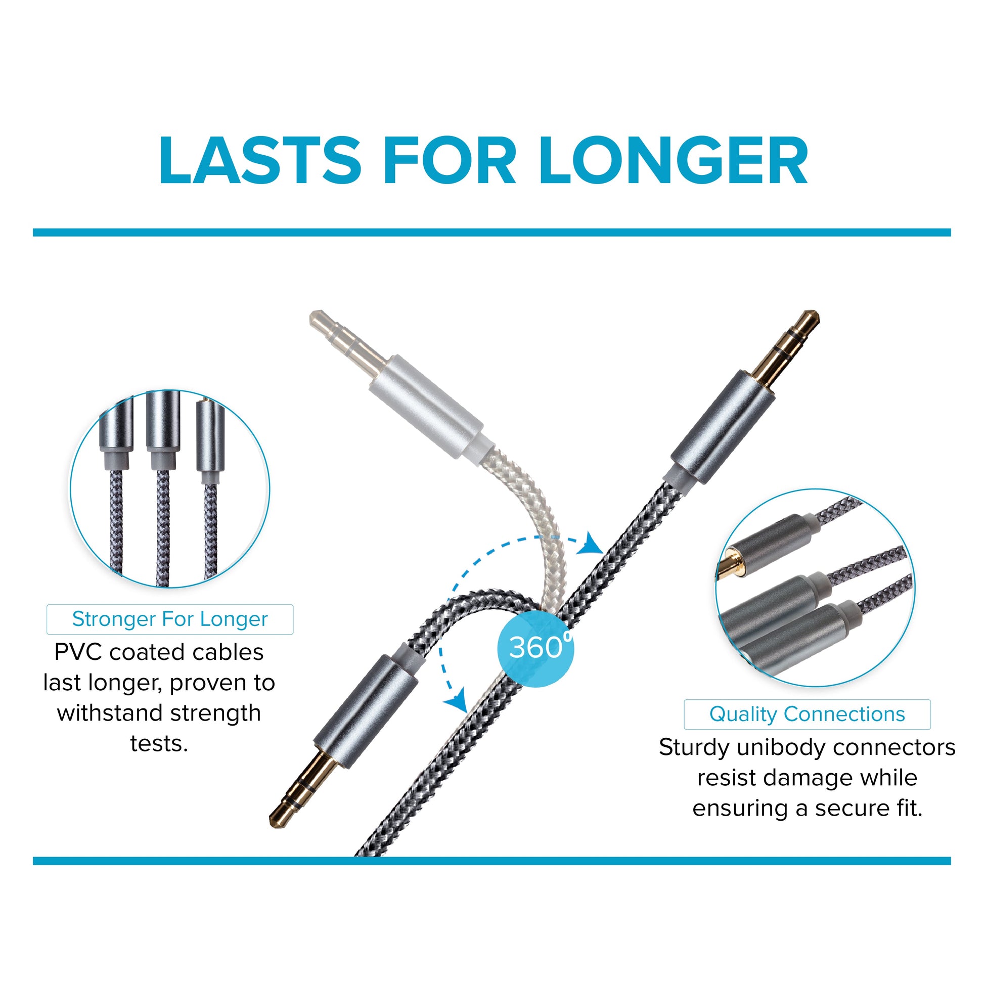 This 3.5mm stereo to Twin 3.5mm Stereo duplicates a 2-channel signal to two outputs. This Maplin 3.5mm Aux Stereo 3-Pole Jack Plug to Twin 3.5mm Female Jack Plug Cable is commonly required when connecting two pairs of headphones to a single audio output. For example when two users wish to listen to one MP3 player with their own set of headphones