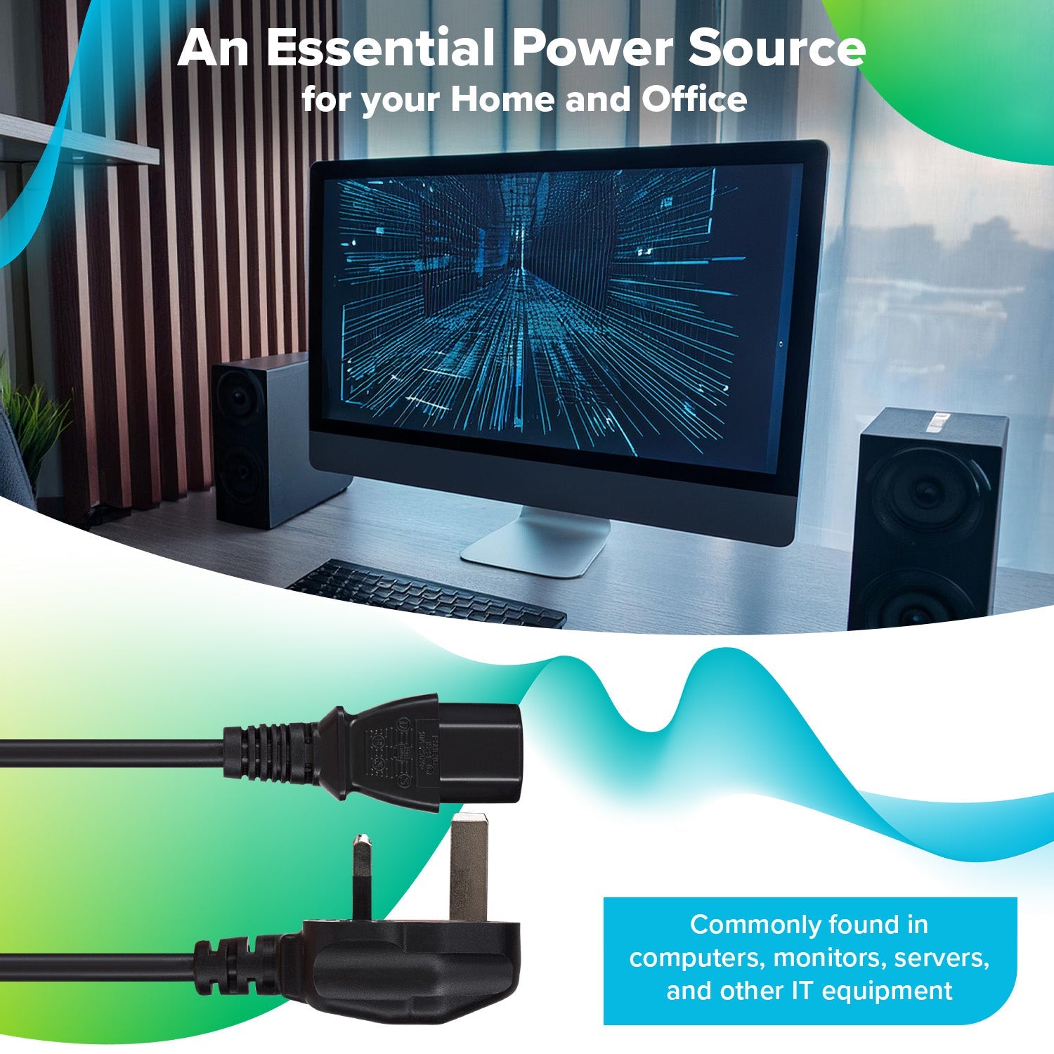 This Maplin Power Lead IEC C13 Female Plug to UK 3 Pin Plug, also known as “kettle lead”, is most commonly used in high powered applications such as computer monitors, TVs, Audio systems, Desktop PCs, printers and many more. As these cables are built to carry heavy current through them, the cable jacket is slightly thicker than conventional power cables and heavy-duty connectors.