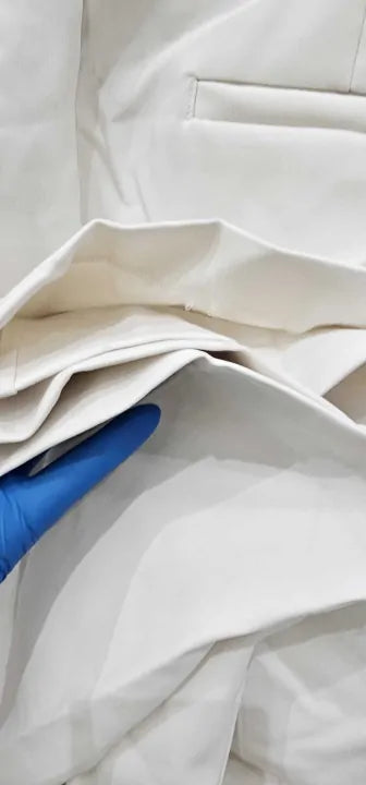 Wide leg Mid rise Belt loops Composition: 71% Polyester 22% Viscose 7%Elastane Colour: Ivory Care: Wash in water at 30