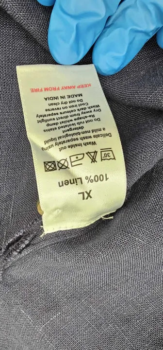 Button through centre front placket Collared neckline Curved front and dipped back hem Composition: 100% Linen Colour: Navy Care: Machine wash