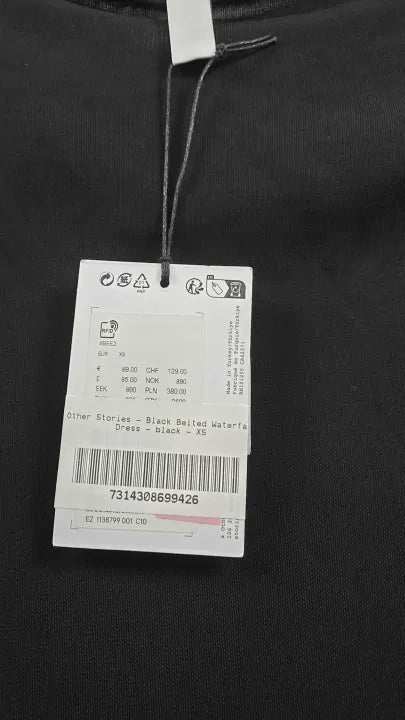 & Other Stories - Black Belted Waterfall Dress - Black Size: Xs