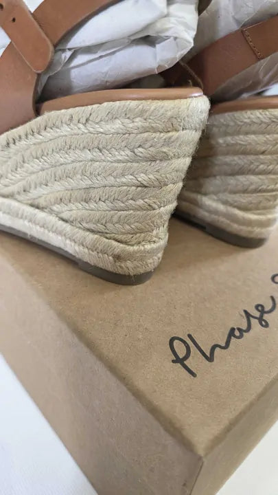 Phase Eight - Brown Leather Strap Wedge Sandals Size: Uk 6