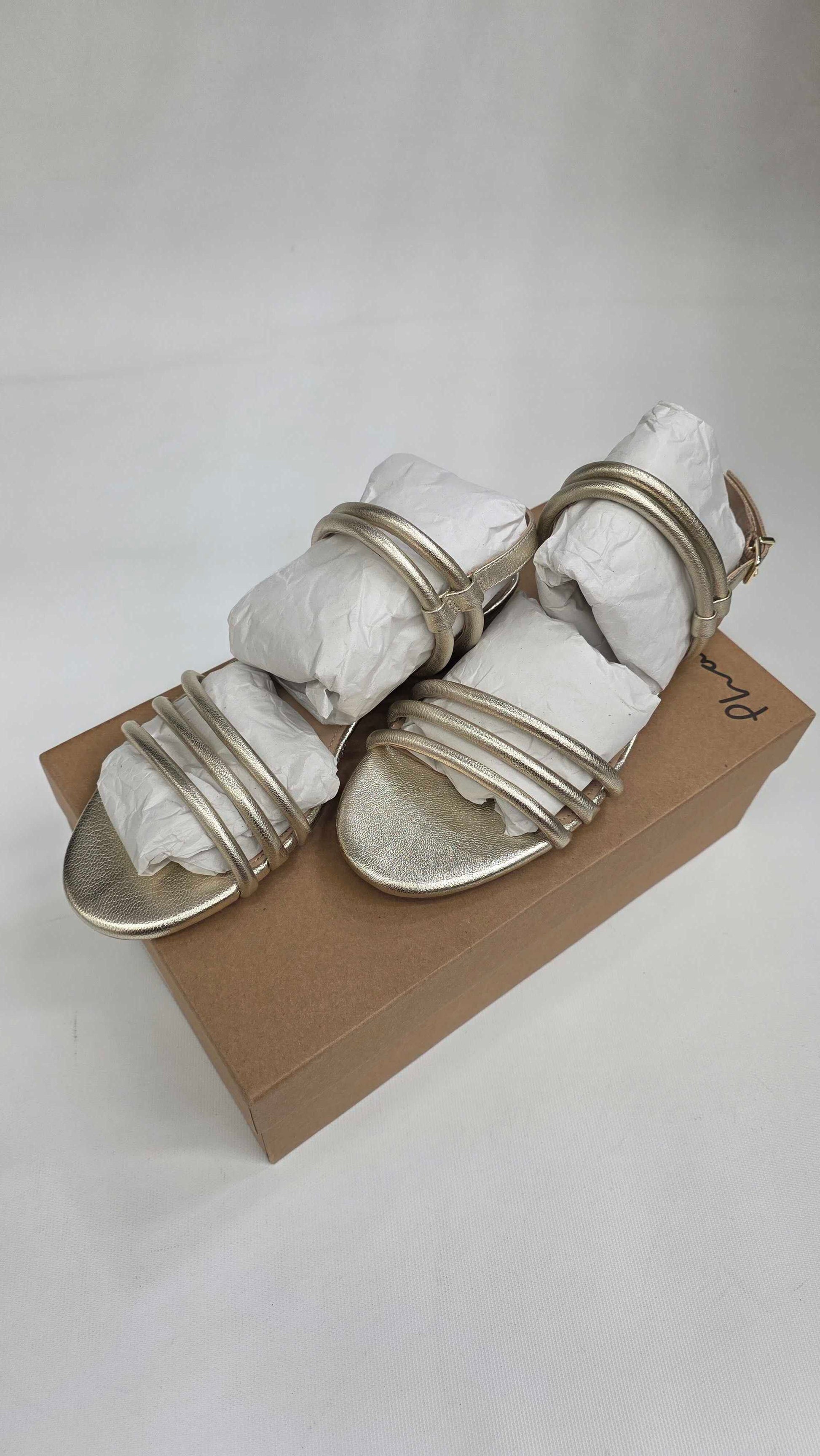 Phase Eight - Gold Leather Strappy Flats Size: Uk 7