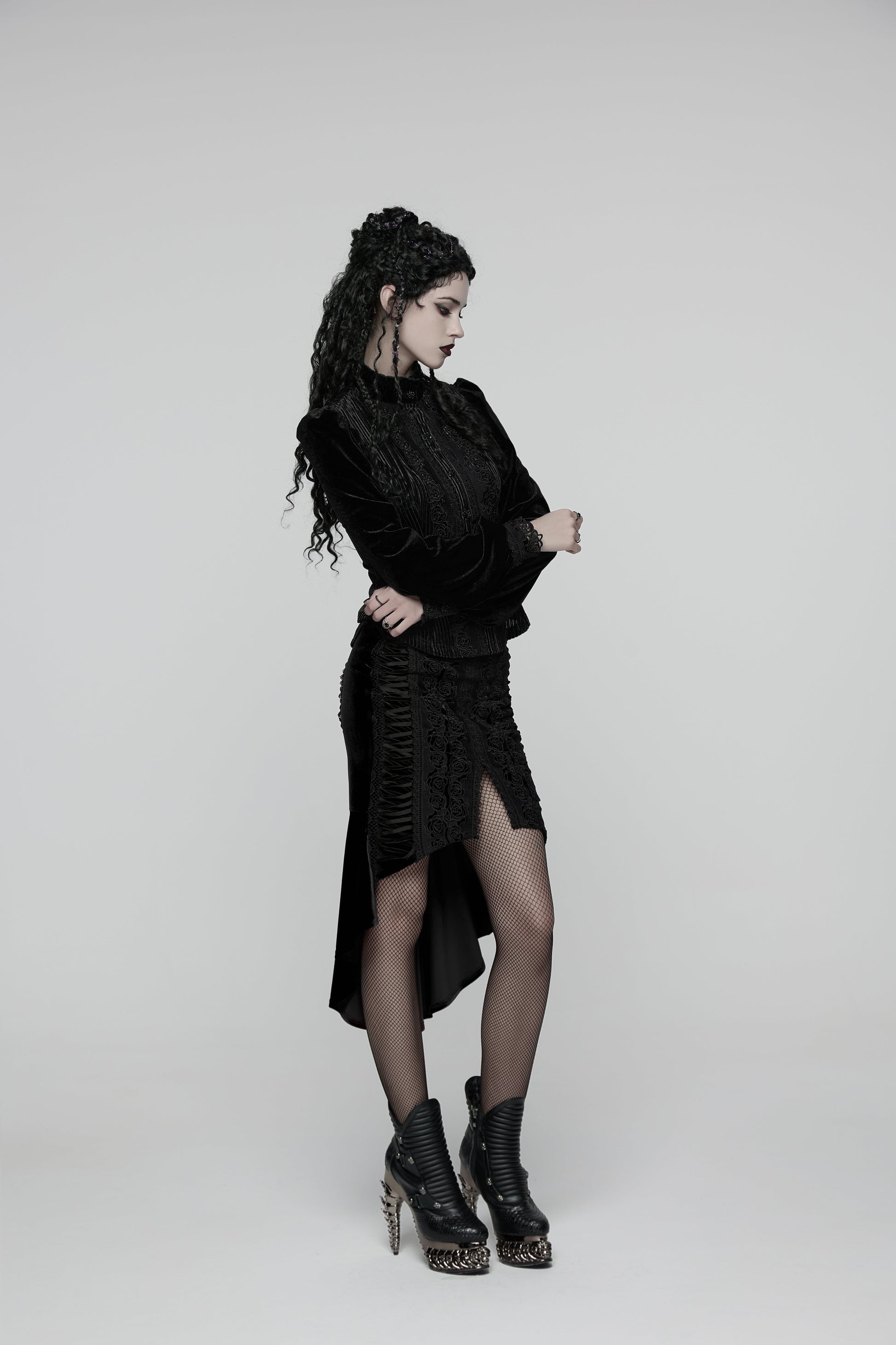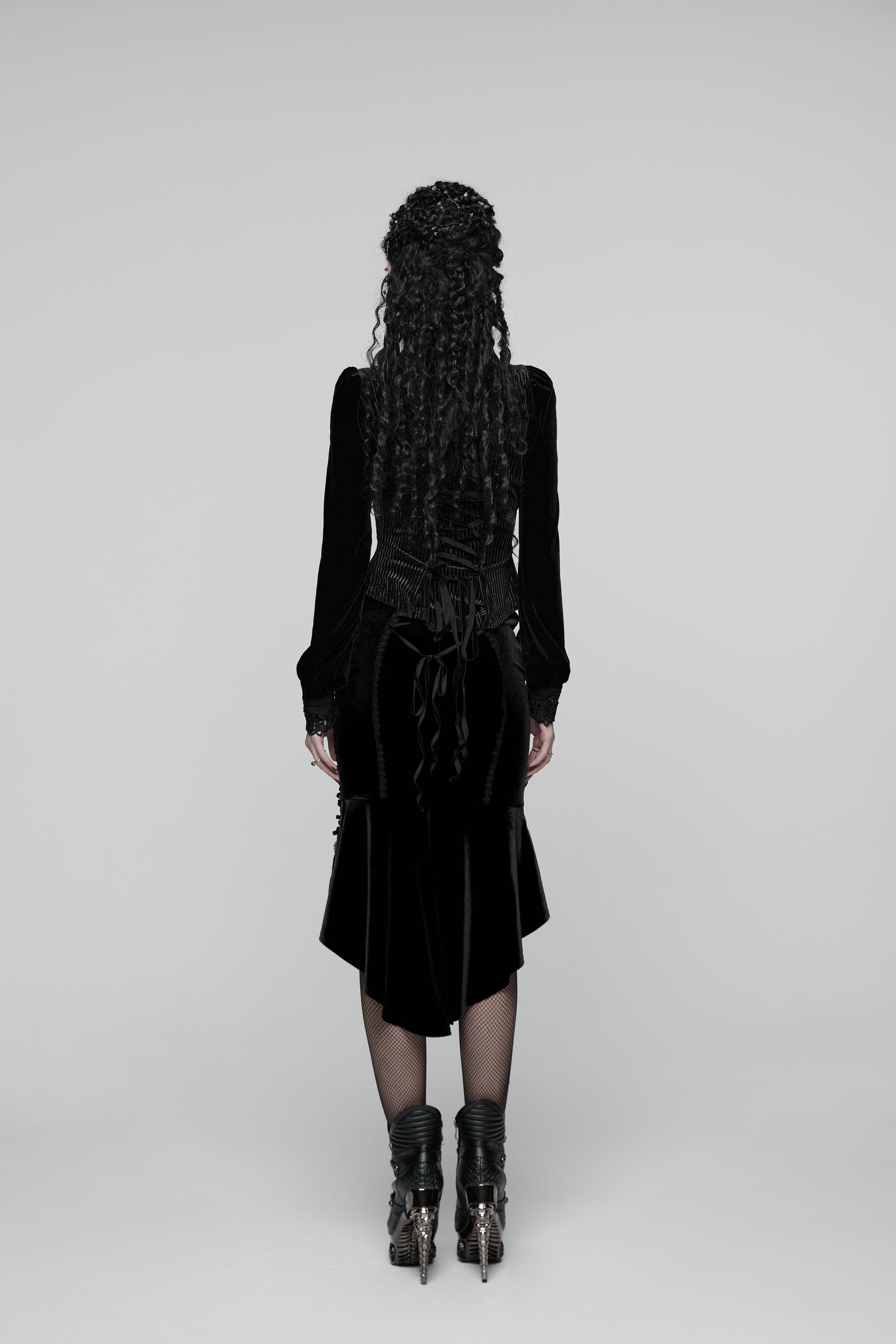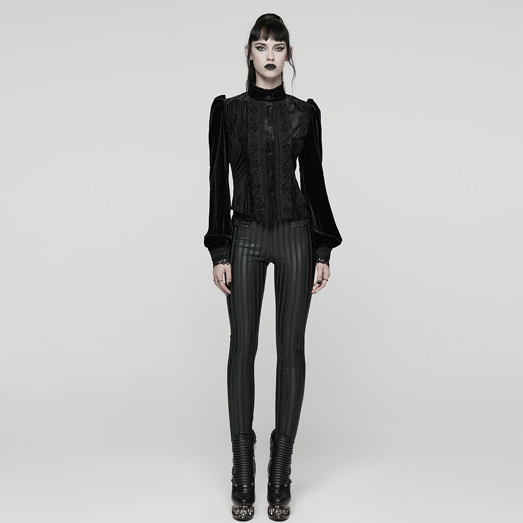 Elevate your everyday look with the Punk Rave Daily Goth Shirt – a romantic Victorian-inspired blouse with a sharp modern edge. Designed in a luxurious soft black velvet, this close-fitting top balances elegance with subtle rebellion.