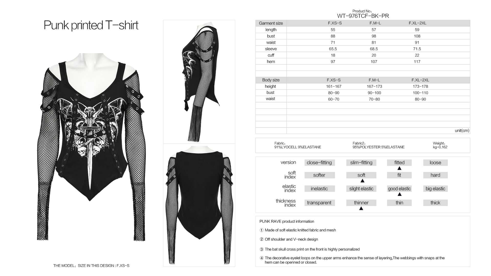 The Punk Rave Vonda Printed T-Shirt is made of soft, stretchy fabric for ultimate comfort. The off-shoulder and V-neck design adds a touch of style, while the bat skull cross print on the front adds a personalized touch. The decorative eyelet loops and snap closures at the hem offer a unique sense of layering. (We're batty for this top!)