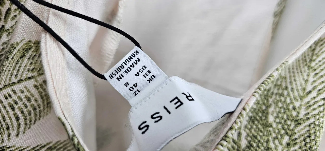 | Reiss - Neutral Leaf Print Anna Linen Midi Dress - Beige Green Print Size: Uk12 | ||||
