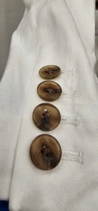 Double Breasted Flap Pockets Back Vent Composition: Main: 51% Linen 49% Viscose Colour: White Care: Do Not Wash