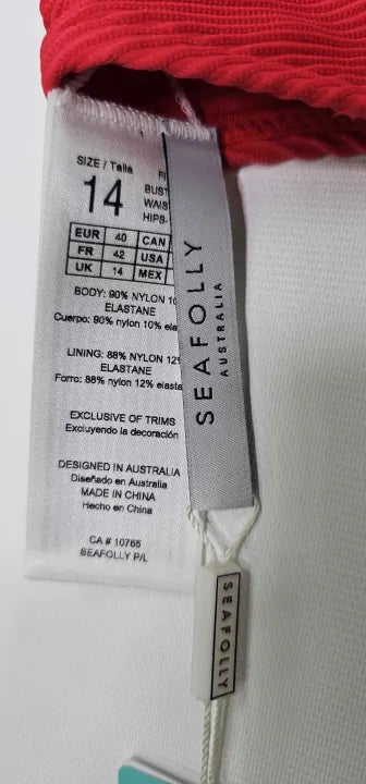 | Seafolly - Red Retro Square Neck One Piece - Red Size: Uk14 | ||||