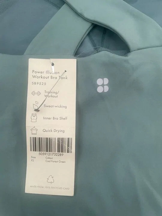 Sweaty Betty - Power Illusion Workout Bra Tank - Cool Forest Green Size: Xs
