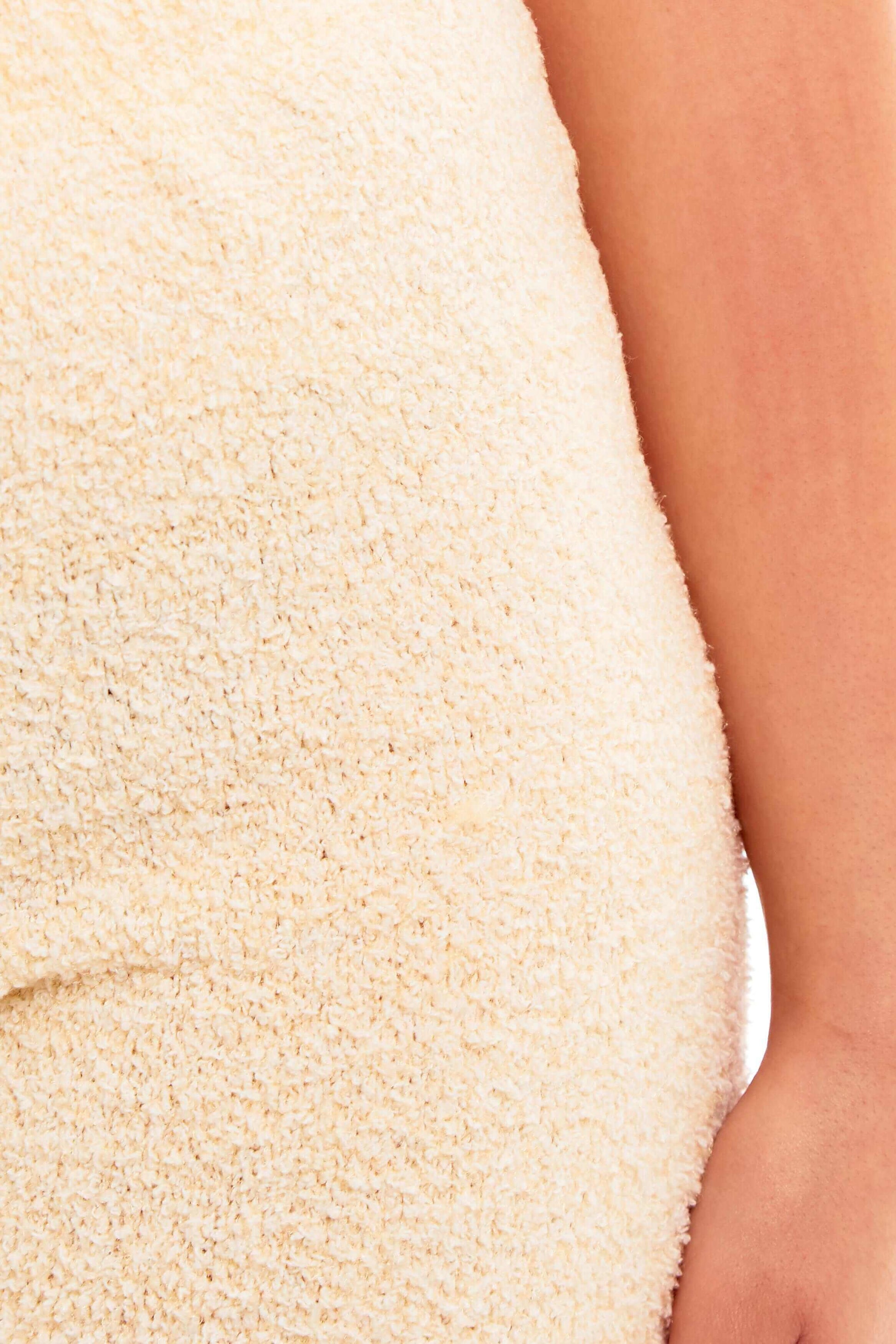 Description: This loungewear set is made from a super soft knitted yarn material, providing a luxurious feel against the skin. The fluffy, stretch fabric ensures a relaxed fit, making it perfect for lounging all year round.